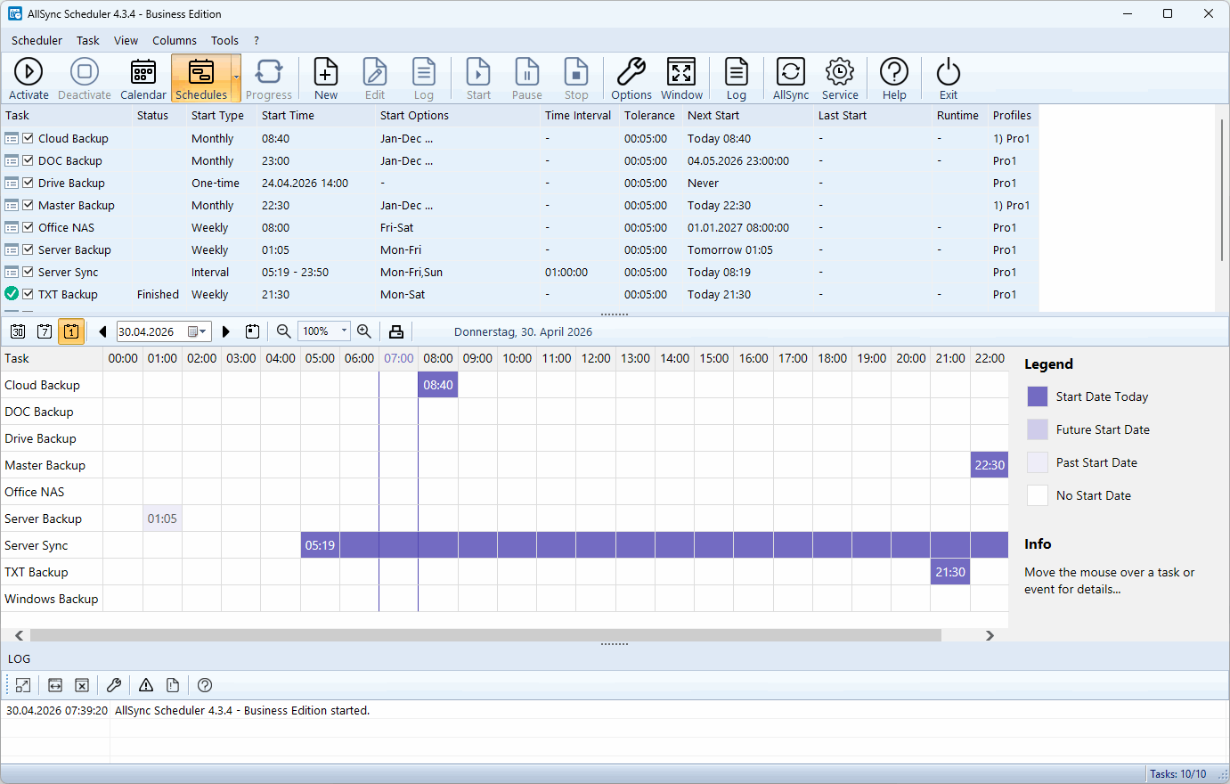 Get a visual impression of AllSync: On this page you will find a selection of screenshots showing different areas and functions of the software. Click an image to open the corresponding view in full size.