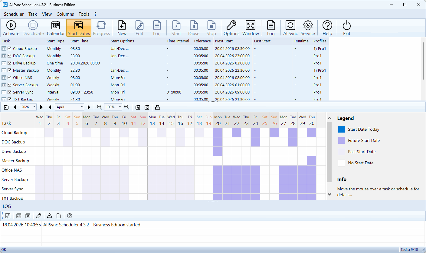 AllSync Scheduler Start Dates